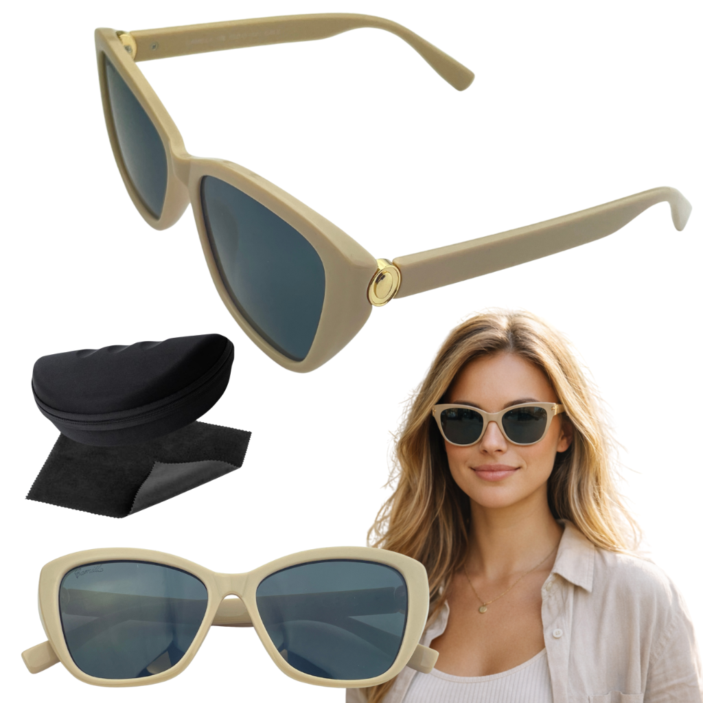 Okulary Przeciwsłoneczne Damskie Kremowe POLARYZACJA UV400 Etui Camilla