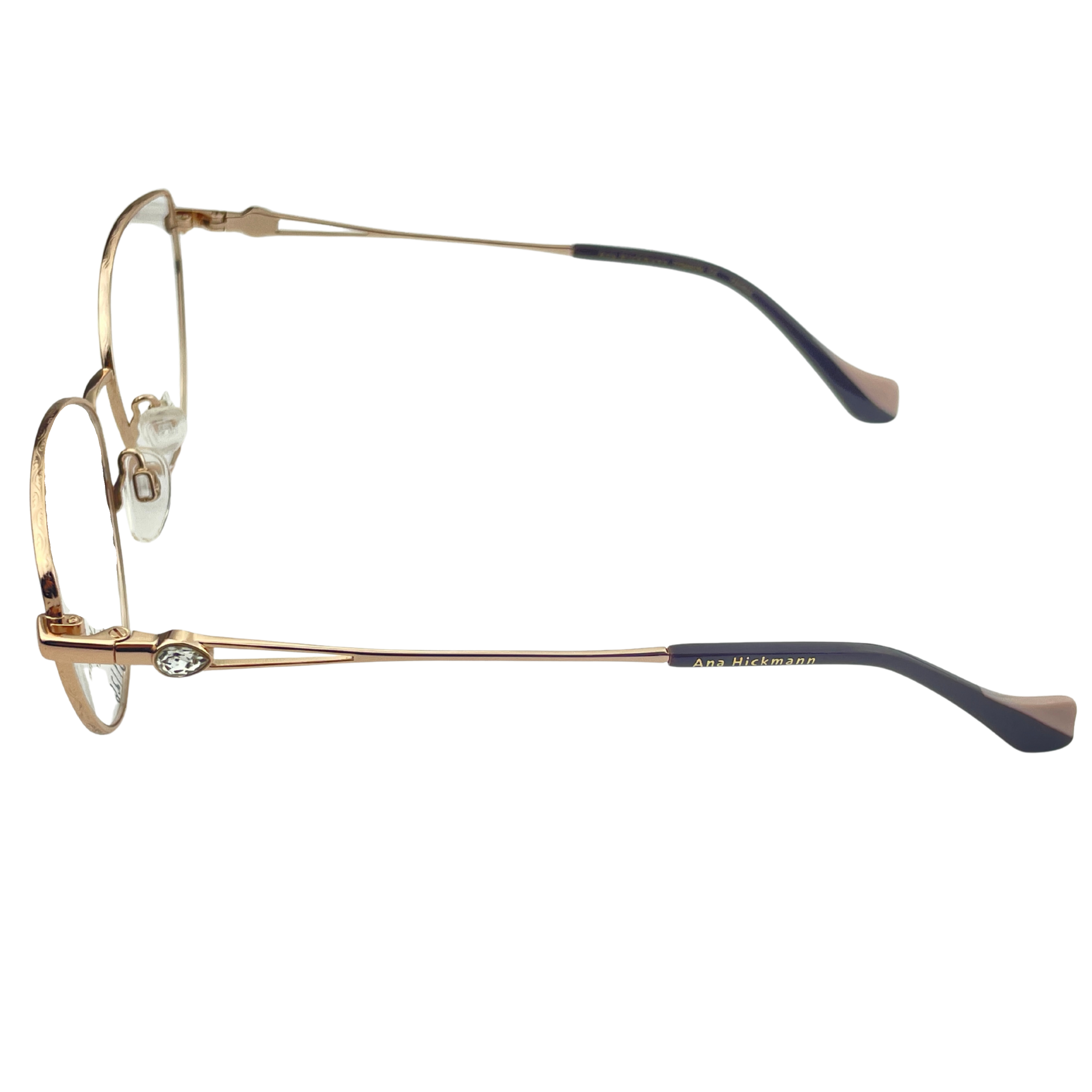 Oprawki wykonane z wysokiej jakości materiałów, które zapewniają trwałość, elastyczność oraz komfort użytkowania. Starannie dopracowane detale i elegancka forma podkreślają luksusowy charakter modelu, charakterystyczny dla marki Ana Hickmann.