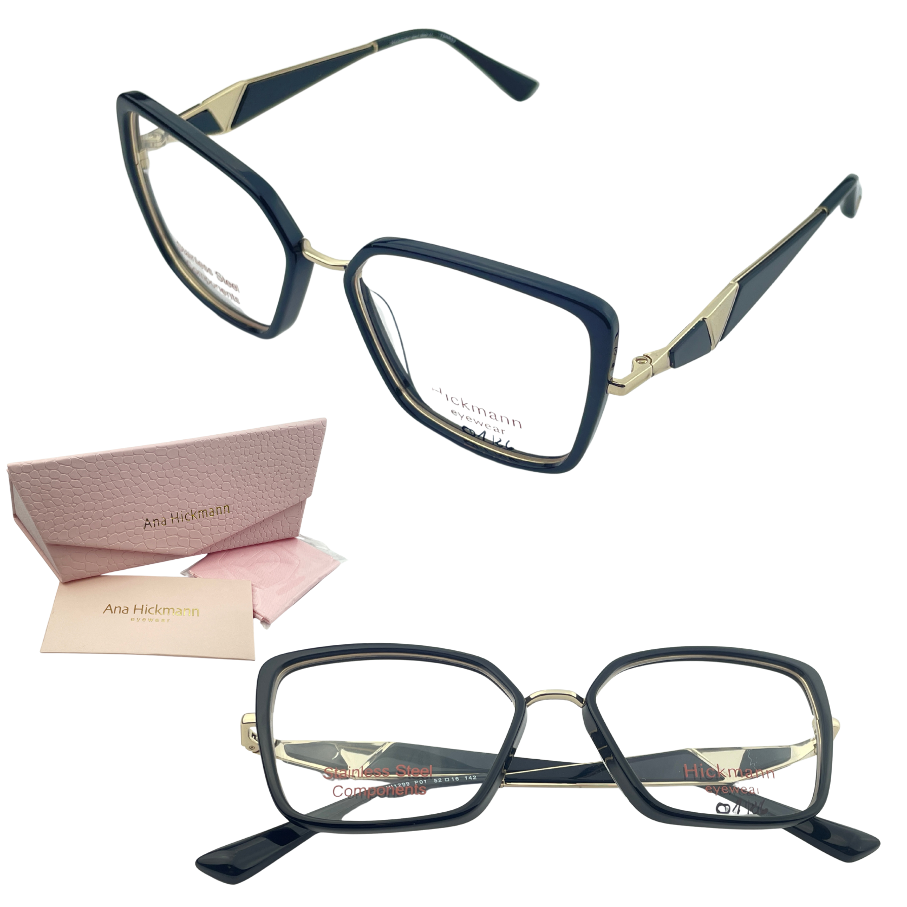 Oprawki okularowe Ana Hickmann HI1299 P01 damskie kwadrat czarne złote
